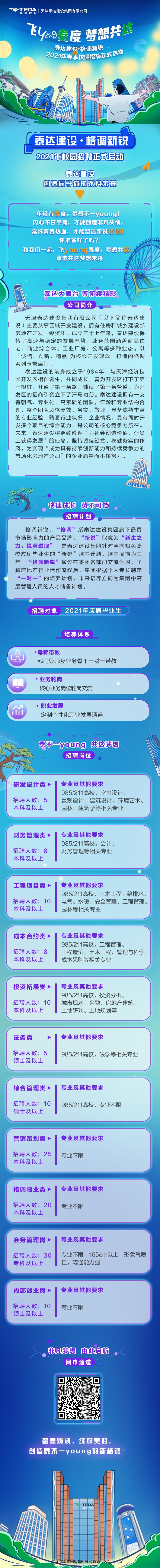 格调新锐,“格调”系泰达建设集团旗下最具市场影响力的产品品牌,“新锐”取意为“新生之力,锐意进取”,是泰达建设集团针对全国知名高校应届毕业生的“新锐”培养计划,培养周期为三年。“格调新锐”通过轮岗交流学习,快速学习房地产行业运作流程后,集团根据个人专长制定“一对一”的培养计划,未来培养方向为集团中高层管理人员的人才储备计划。