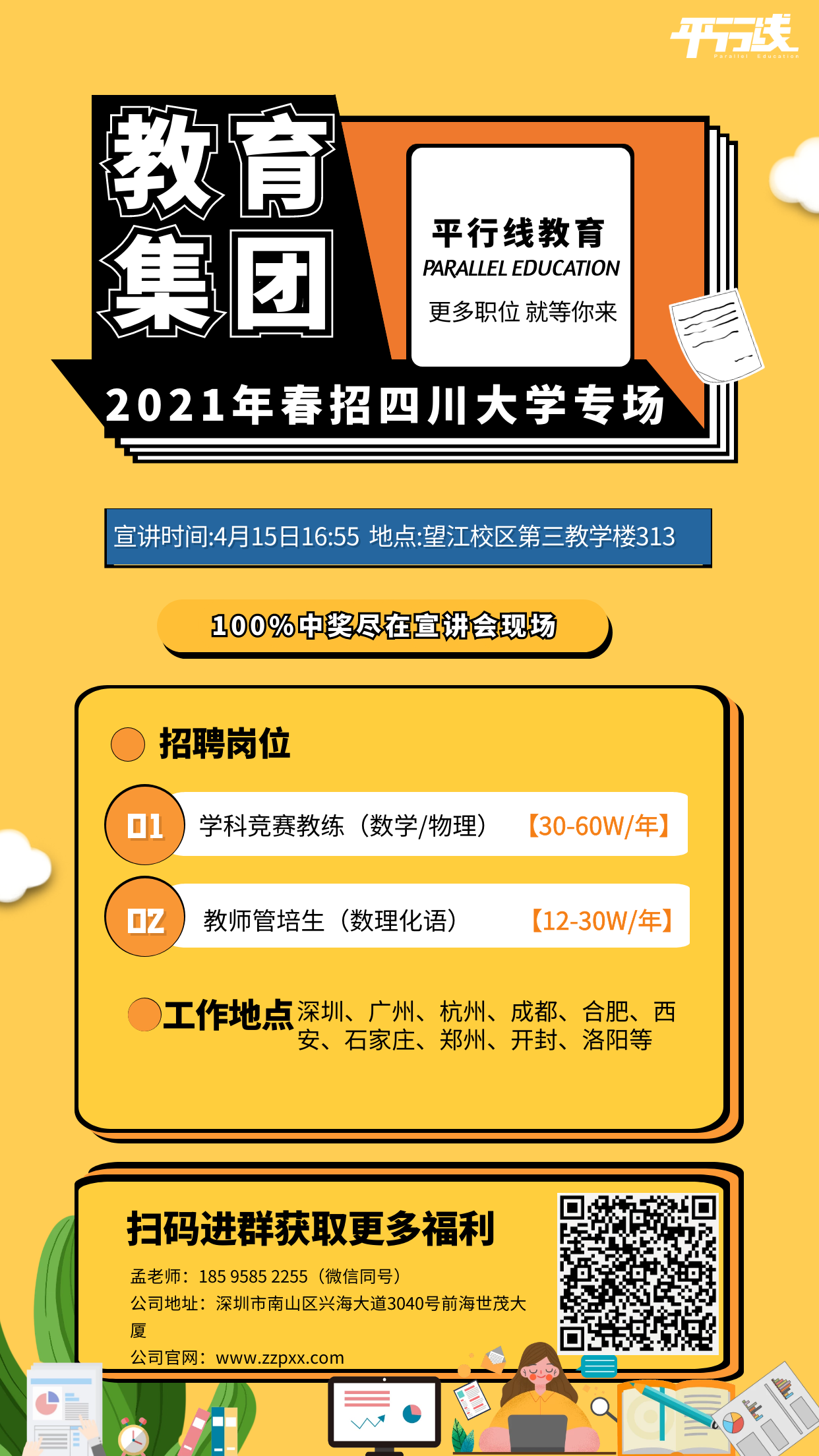 【平行线教育四川大学专场】这里有一场100%中奖活动,66元红包等你来拿~多个城市多个岗位提供【招聘岗位】学科竞赛教练(起薪30w-60w/年)教师管培生:12w-30w/年