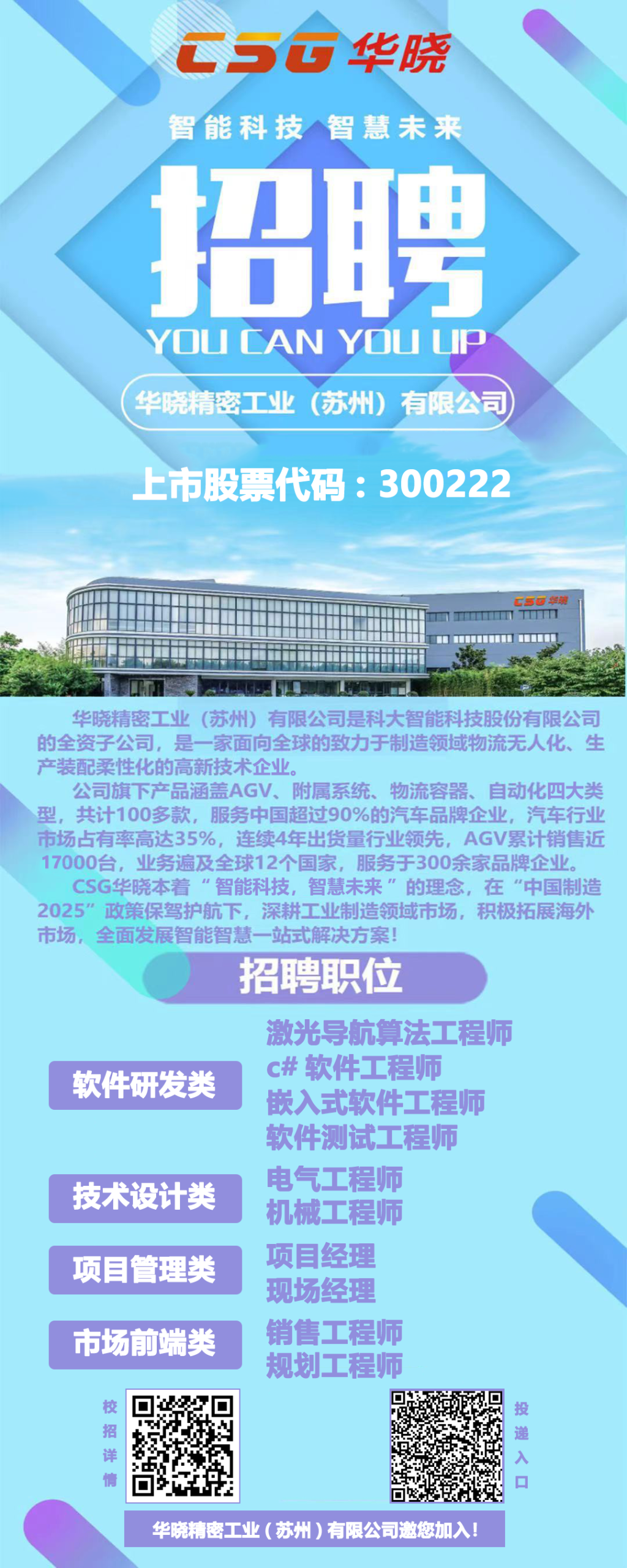 华晓精密工业(苏州)2022届四川大学校园招聘火热进行中!空中宣讲时间:10月28日 上午10:00点击链接入会 https://meeting.tencent.com/dm/QSHiuN5R3oQD或腾讯会议→加入会议→输入会议 ID:542 498 555️职能、技术岗位等14个岗位需求,诚邀同学们前来应聘️核心技术类岗位年薪可达20W+人事电话/微信:17596540824